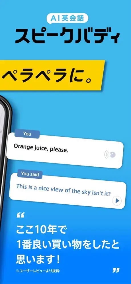 「スピークバディ」は、AIと一緒に英会話の練習ができる国内No.1英会話アプリです。グッドデザイン賞の受賞や、ポケトークとの共同開発、世界最大級のEdTechコンペでのAI賞など、実績が豊富。400万人以上が利用しており、「英語を話せるようになりたい」「TOEIC・TOEFLの対策を始めたい」と考える方にぴったりのアプリです。